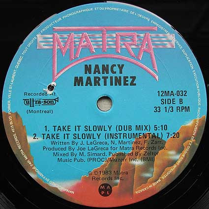 Martinez, Nancy - Take It Slowly b/w Take It Slowly (Dub Mix)/Take It Slowly (Instrumental)
