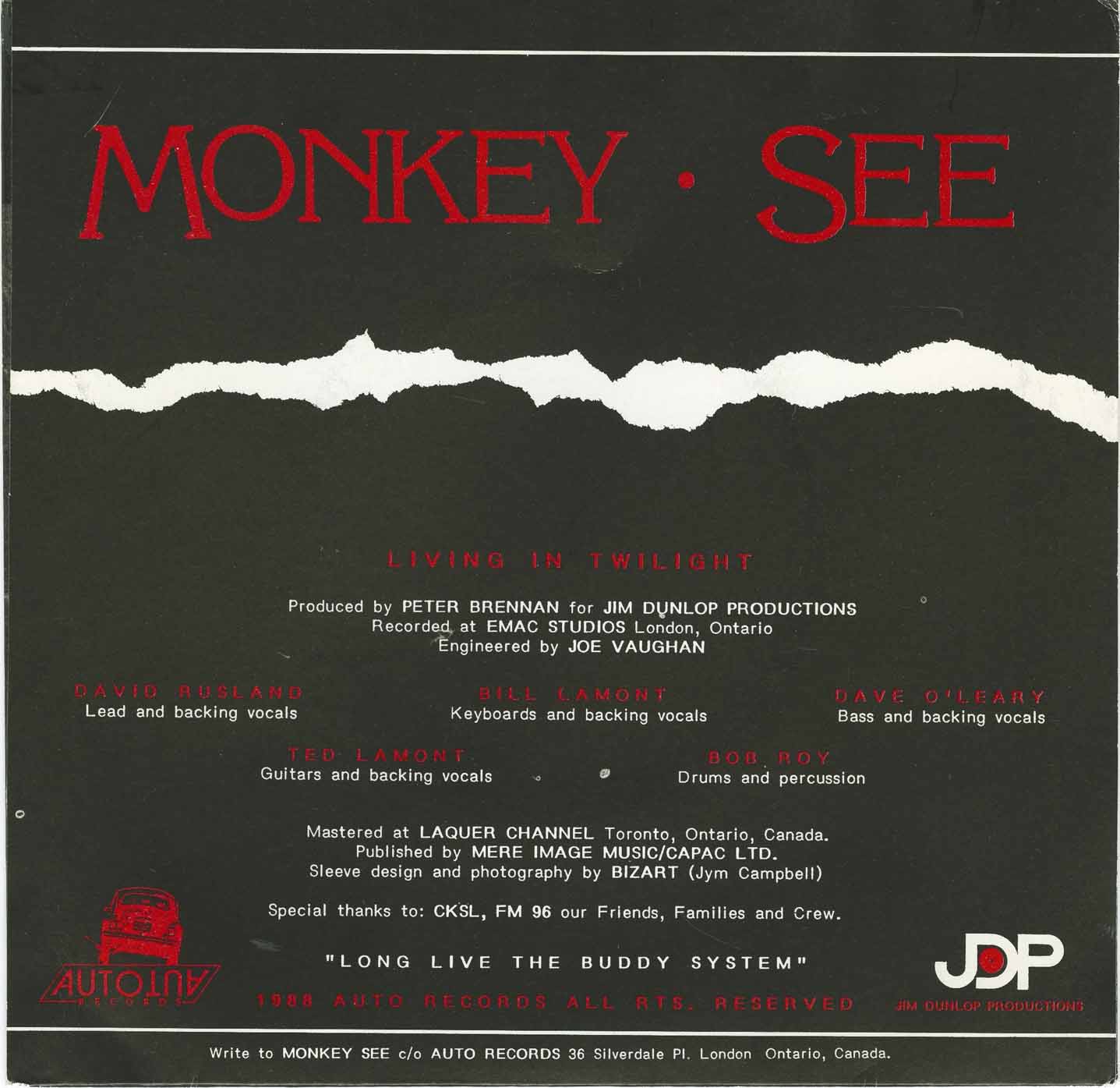 Write to: Monkey See, c/o Auto Records, 36 Silverdale Pl., London, Ontario, Canada