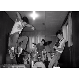 The Neos formed in 1980 in Victoria, B.C., an hour and a half ferry ride outside of Vancouver. This high school trio played noisy, lightspeed HC in an attempt to be the "world's fastest band", which at the time, they probably were. Although they gigged infrequently, they still managed to open for the likes of the Subhumans, Black Flag and Dead Kennedys (making a fan out of Jello). They released two 7"s, both in 1982, on their label Alandhiscar - the 11 song End All Discrimination and the 14 song Hassibah Gets The Martian Brain Squeeze. Ratcage Records out of New York City repressed the second 7" following year.