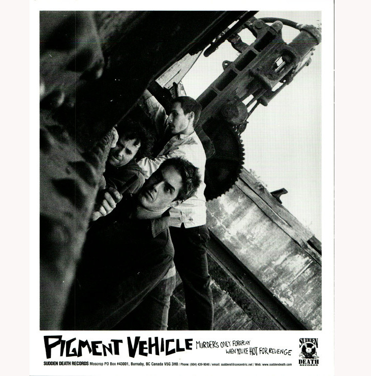 Pigment Vehicle were an experimental punk and rock band formed in Sidney, British Columbia, in the late 1980s by Colin MacRae (bass guitar, vocals), Jason Bonneau (drums, vocals), and Craig Vishek (guitar, vocals), emerging from the same Victoria-area underground that produced Nomeansno and a generation of rhythmically adventurous West Coast bands. Active from 1988 through 1998, Pigment Vehicle developed a reputation for angular guitar work, shifting time signatures, and an idiosyncratic blend of punk, hardcore, jazz, and progressive rock elements—a sound that anticipates what would later be described as math rock in Canada.