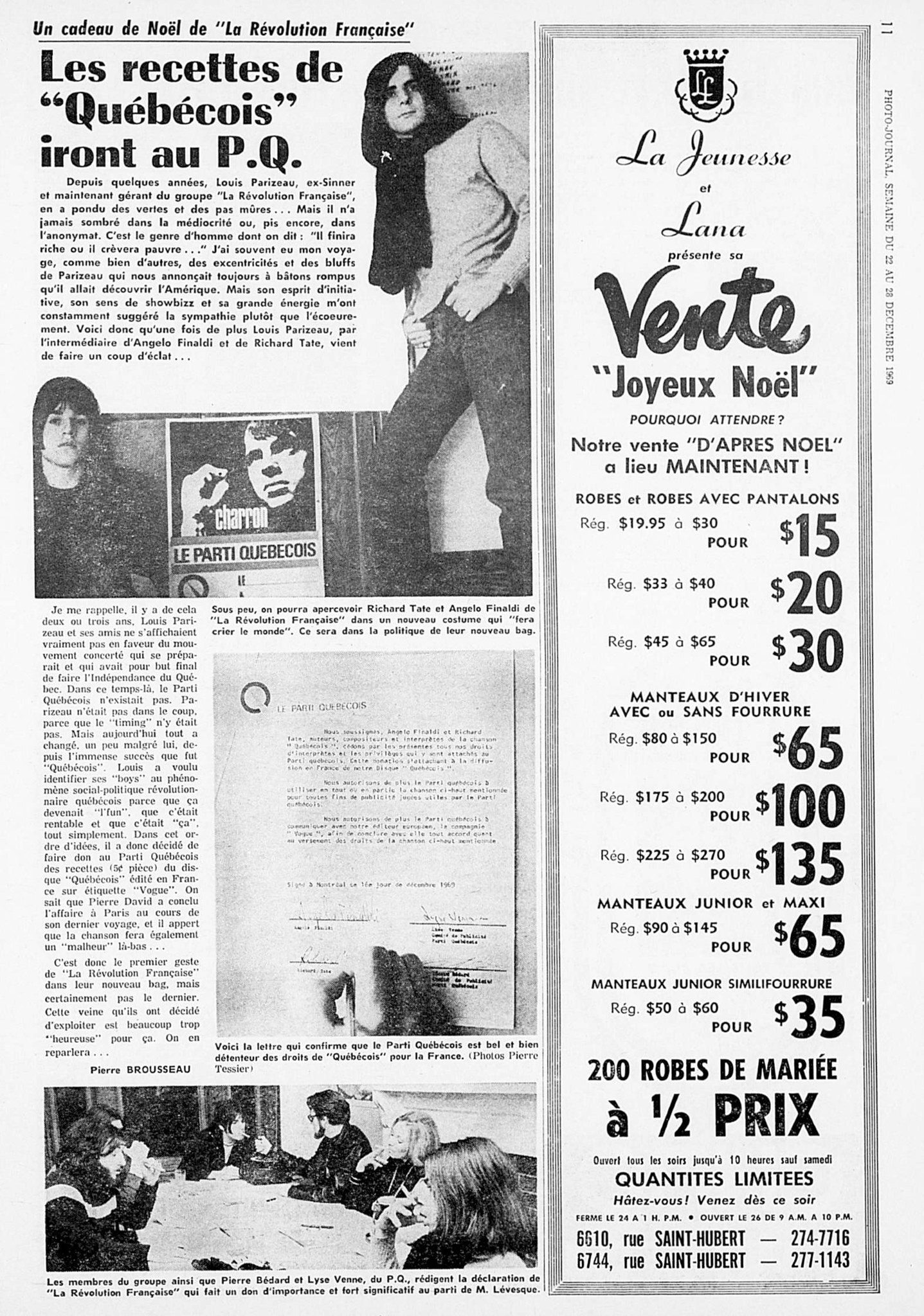 In 1973, Photo-Journal reported that Louis Parizeau, now managing La Révolution française, had officially donated all royalties from “Québécois” to the Parti Québécois—turning a pop hit into a gesture of political solidarity. “It was only natural,” he said, “that Québécois should give back to the cause that inspired it.” The act reflected his transformation from drummer-provocateur to cultural activist, bridging art and politics in a uniquely Québécois way.