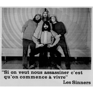 Les Sinners were born in the summer of 1965 in the Outremont district of Montréal, one of the first French-speaking garage rock groups to emerge in Québec. Before settling on their infamous name, they briefly performed as the Silver Spiders, a teenage combo from the Notre-Dame-de-Grâce neighbourhood—a part of Montréal where French and English cultures overlapped naturally. That bilingual environment shaped their early sound: raw, irreverent garage rock sung in both languages. Their earliest concerts took place in the gymnasium of École Querbes, where Saturday-night dances became the testing ground for their spirited performances. From the outset, Les Sinners stood apart from the polite, clean-cut image of the “yé-yé” era. To promote their first single, they staged a mock protest on the steps of Saint Joseph’s Oratory, carrying signs that read “We love the Sinners.” Halfway through the stunt, several members slipped away, leaving the remaining placard to declare “We love Sin.” The joke summed up their identity perfectly—playful, subversive, and unapologetically mischievous.