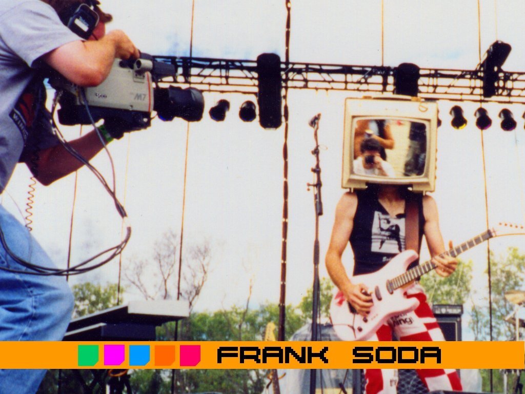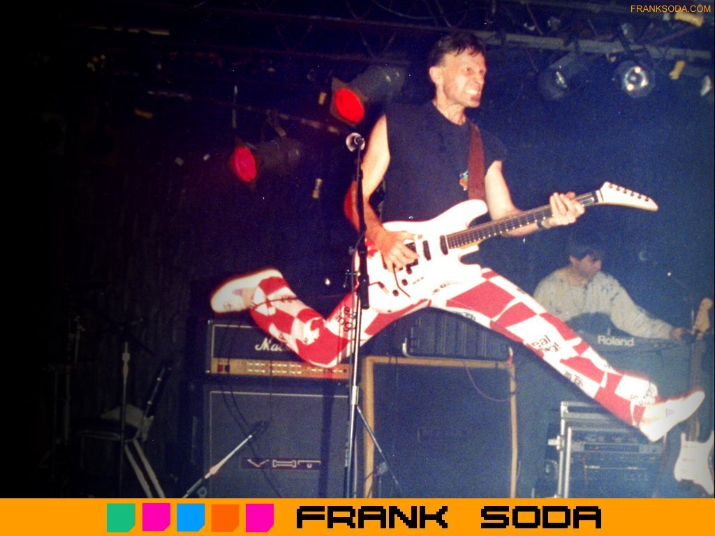 In 1985, Terry Watkinson (Max Webster) joined the band on keyboards and vocals. Terry and Frank exchanged ideas and planned on writing together. Met his wife Joyce. Frank and Joyce were married and had their first child in 1986. Terry had also recently had another child so they decided to take time off touring, and formed a duo. Terry programmed the drums, and played keyboards and left handed bass. They played songs from Max Webster that Terry wrote and sang, as well as Soda songs, and some fun cover tunes. Frank had to put everything on hold in 1987 when his father became ill and flew back to Vancouver. At this time, he decided to move back to Vancouver to help the family out. Later, he set up a cross-Canada tour with a new all female band, "The Pop Tarts". Tessa Kimmel (bass), Tiz (drums), and Cathy (guitar). Once in Vancouver the girls decided to move back to Toronto. By 1989, he teamed up with some of Vancouver's top musicians. Marc LaFrance, drums, vocals), and Mick Della-Vie, (bass,keyboards,vocals), have played or recorded with such artists as Loverboy, Aerosmith, Randy Bachman, Bryan Adams and Trooper. With this new lineup, he put his original show back on the road and toured to Toronto playing festivals with Colin James, Goddo, and Frozen Ghost. Back in Vancouver they played local clubs and opened for such acts as B.T.O., Glass Tiger, etc. Frank set up a basement studio in 1990, learning more about sequencing from friends Cory Lavigne and Terry Robotham. Having recently had his second child, Frank took time off to write. Jammed and played local clubs in the Vancouver area.