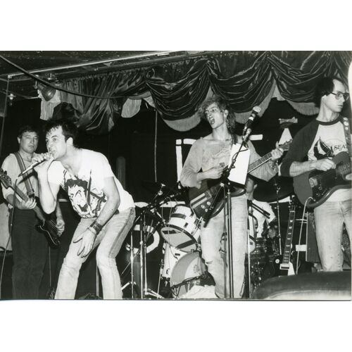 The Spores formed in Vancouver in 1983 and became part of the city’s second wave of punk. The group centered on guitarist Wayne Abstain, guitarist Sandy Beach, drummer Boom Boom Benson, bassist Johnny von Klutz, and vocalist Danny Shimanny. From the start they combined straightforward punk songwriting with a sense of humour and stage presentation that made them stand out from other local bands, but their music was always the core of the project.