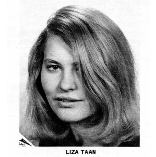 One of the newest recording artists on the Montreal scene is a pretty young gal named Liza Taan. From out of the folk-rock bag she's picked a couple of groovy songs written and produced by Martin Martin, who's no stranger to the Canadian music scene himself. Liza's disc is tagged "Simon, Simon" and "No One 'Cept Me" (RCA 57 -3422). Liza did a lot of singing in the Toronto and New York Villages before they turned folk, rock. She now spends most of her time in Montreal. Not to be left behind the times. Liza is now rehearsing with a backing group which she has just formed.