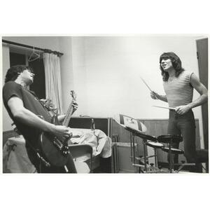 At age 20, Pat with the help of some friends he moved to London in hopes of achieving his dreams. Armed with a Marshall amp, a wah-wha pedal, and a few hours of studio time Pat recorded a demo that soon earned him a recording contract with Polydor. Releasing his debut album "Pat Travers" in April 1976 with Mars Cowling on bass, and Roy Dyke on drums, Pat embarked on a tour of England in support of his debut. Adorned in a red and white jumpsuit displaying the maple leaf of his native Canada, Pat increased his following of fans. Trademarks of his early shows included giving away cardboard replicas of his black Fender Telecaster, playing barefoot, and inviting audience member to play "air guitar" on stage during the show. It was with this accessibility to the fans that Pat became an invited performer to the huge Reading Festival in 1976.