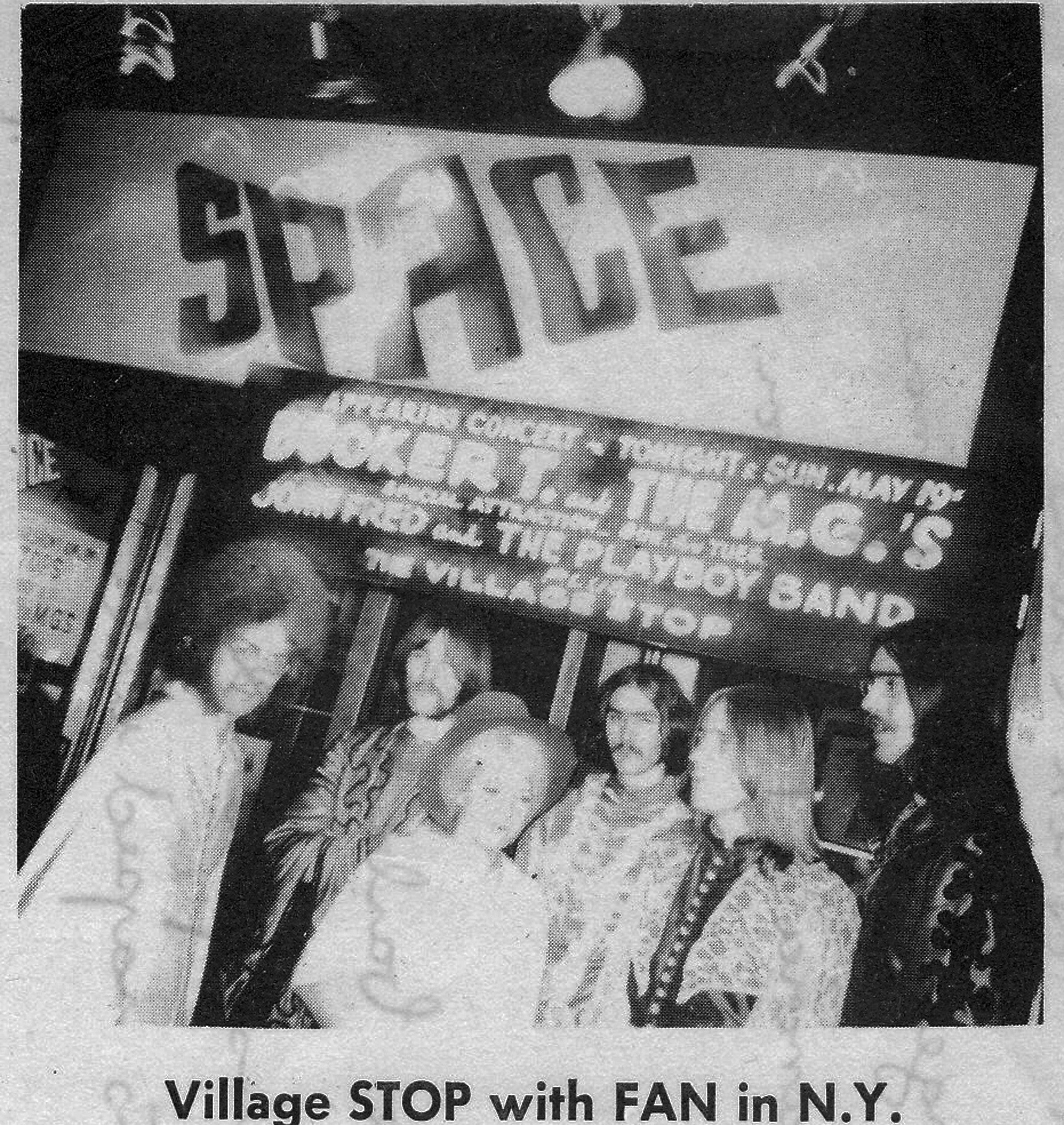 The first vocalist in the band was Bill, a red-haired Mick Jagger look-a-like who had good stage presence and energy, but lacked in vocal quality. After some searching we added a fifth member (Al Pope) who had a fair voice and a look the band required (long black hair, charming to the women). Over the next while the band evolved, matured musically, began gaining a following in the local teen dance scene and changed the name to S.T.O.P. (Sound’s Typical Of People). The Village part was added later because of the "Yorkville" happening in Toronto and "Greenwich Village" in New York, at the request of a manager we soon acquired as we were becoming popular. He felt it would be more "in" with the music scene at that time.