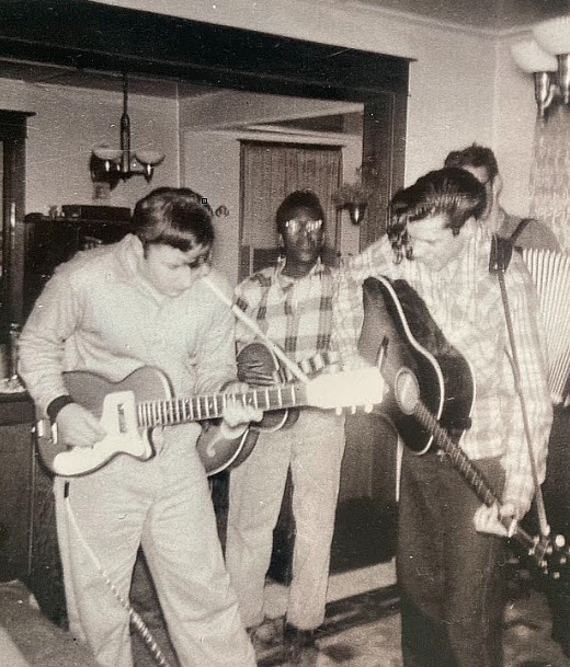 In 1959, Angus began working with the talented Vic Mullen, Harry Cromwell, Brent Williams and others producing, performing and writing bluegrass music as The Birch Mountain Boys. It was also during this time that Angus began writing and composing his first original songs including "Hit Parade of Love" and "I'll Forgive You" as well as a number of covers including "Give my Love to Nell", "Long Black Veil" and "The Wild Colonial Boy" among many others. The Birch Mountain Boys were among the early pioneers of bluegrass music in Nova Scotia and entertained fans with their skillful playing, singing and harmony and were able to masterfully put their unique Maritime bluegrass flavor to earlier gospel, country, folk and other traditional songs. This was possible because each member of the group were each creative and otherwise talented in their own rights. Over the years, The Birch Mountain Boys continued to tour and record together in addition to developing careers individually or in other groups, across several genres of music until their separate endeavors caused them to disband in the mid sixties.