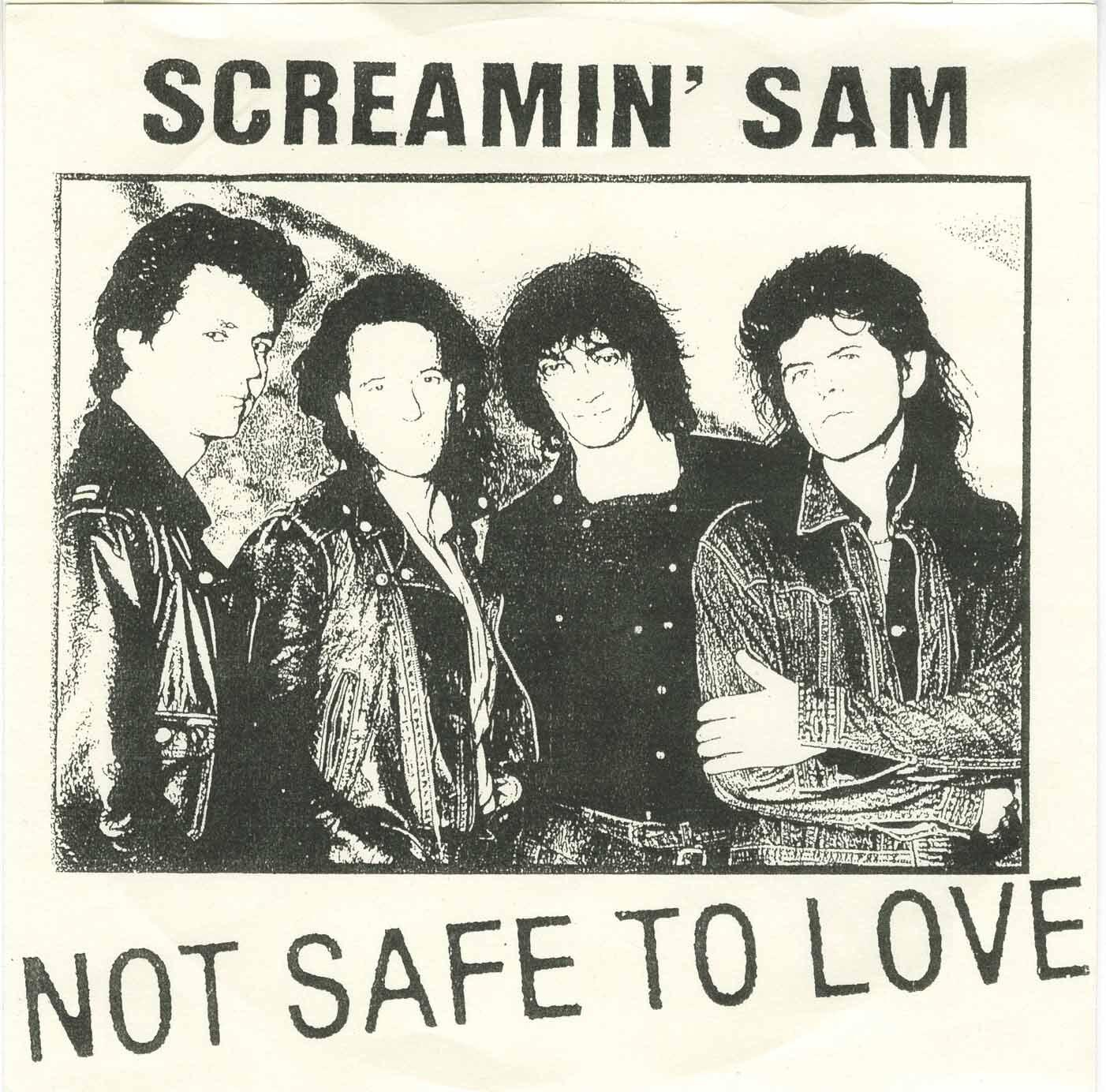 Screamin Sam started as a spin-off of a later Viletones lineup in about 1981. Sam, Tony & Gideon hooked up with Brian Connelly (formerly of Crash Kills Five, and subsequently the guitarman in Shadowy Men on a Shadowy Planet) and started playing these really great Beatlesque pop songs at Ramones speed and Motorhead volume. The band went through a few personnel changes before I hooked up with Sam again in 1985. In good Viletone fashion, all the early Screaming Sam stories involve riots.
