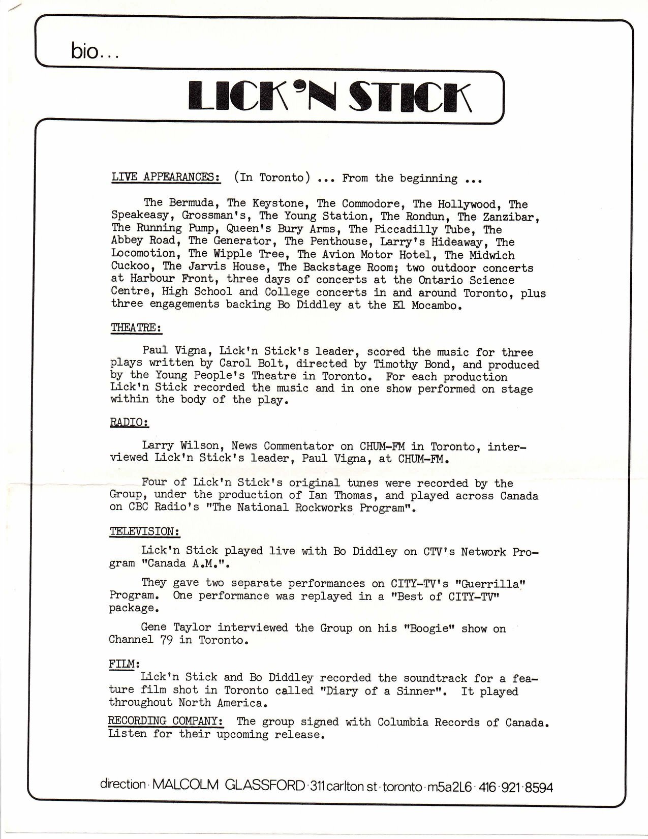 I formed my Band Lick'n'Stick while at The Bermuda Tavern, which was on the east side of Yonge St. at Gerrard St. I played there from 1969-1971. We played 6 forty minute sets a night, 6 days a week, from 7pm-1am with a 3 hour matinee from 3-6pm, on Saturdays. There were 3 topless Go-Go Dancers who danced on little stages located at the front, middle and rear of the club, they did not dance on the band stage which was in the middle of the club. We played opposite a wall sized mirror, that allow patrons to see the band better. The club itself was a long narrow room about the width of a 3 lane bowling alley. It was owned by the Cooper Brothers, who also owned The Brass Rail (AKA Yonge Station), The Zanzibar (AKA Circus Circus), and The Running Pump. I was 18 years old when I started playing there. I wasn't allowed to drink and wore dark sunglasses because the drinking age at the time was 21. It changed to 18 for one year and I was legal then the following year it changed to 19 when I turned 19. I was now a Professional Musician...I made a living playing music, $133. a week. I joined the Musician's Union in 1969. My girlfriend Erika Greenland (my first love and high school sweet heart) and I moved out of a rooming house on Brunswick St., and got our own apartment over a store on Spadina Ave. Grossman's Tavern was across the street and The El Mocambo was up the street. Kensington Market was around the corner which was ideal because we were both vegetarians at the time. I joined the Musician's Union in 1969...It is funny how a picture of a building can bring back so many memories,,, Here is a Picture of me(Paul James) playing in The Bermuda Tavern with my Band Lick'n'Stick in 1969... .. Wow that 50 years ago...
