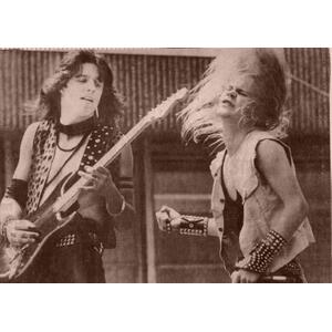 In an awesome twist of fate, 3 years later we were opening for Anvil at the El Mocambo in Toronto, when Steve Harris and Adrian Smith walked in and sat down right in front of us in the middle of our set. They had flown up from the Bahamas, to promote a line of Canadian guitars that they endorsed, and were taking a break from recording Piece of Mind. Pete and I gaped wide-mouthed at each other in utter disbelief!!! Here was Iron Maiden, watching us 15 year olds play Iron Maiden songs. I nearly pissed myself later when Steve Harris told me backstage over a beer ” you sound a lot like Paul Dianno, mate” (Maiden’s first singer).