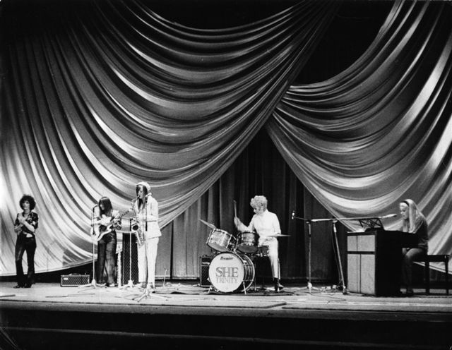 After developing their act locally, the trio decided to head for England—a rare and gutsy move at the time. They boarded the Queen Mary in late 1965 and arrived in London determined to break into the British pop scene. Once there, the group evolved into She Trinity, and added a new member: Pauline Moran, a talented bassist from Blackpool who had co-founded The Missfits, one of Britain’s earliest all-girl rhythm groups. Moran answered an ad in Melody Maker and was hired almost immediately.