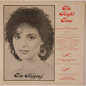 By 1986, Hofgraff was active within Ontario’s independent recording network, releasing a series of professionally serviced singles. Her recordings from this era were written either by Hofgraff alone or in collaboration with Doug Cameron (Mona and the Children), and were produced and arranged by Mike Francis, with sessions taking place at McClear Place in Toronto. Singles such as “The Right Time,” “Forget Me Not,” and later “Woman (He’s Mine)” received national airplay and placed her firmly within Canada’s mid-1980s adult contemporary and pop-rock radio landscape. Later releases involved producer Bob Doldge and Grant Avenue Sound, reflecting a continued evolution toward polished pop-rock production.