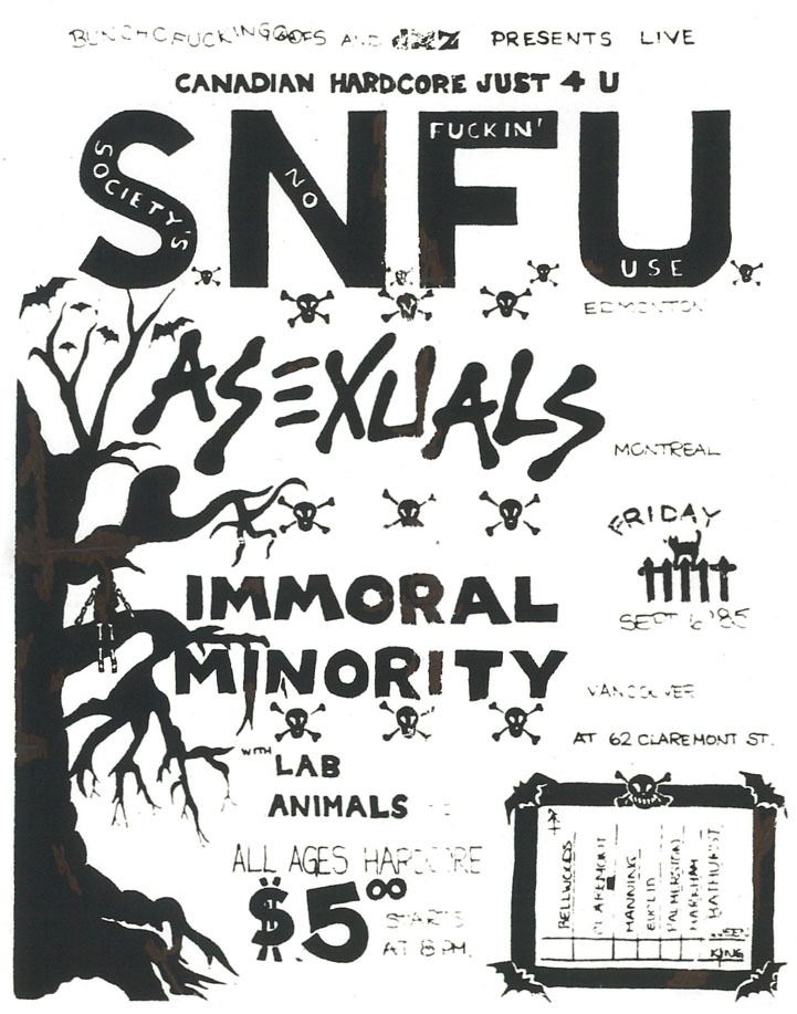 Formed in 1983 by students from Beaconsfield High School—Sean “Head” Friesen (guitar), T.J. Collins (bass), and Paul “Wally” Remington (drums)—the band was soon joined by frontman John “Filthy” Kastner, and quickly coalesced into a blistering punk quartet. Early names like “Commonwealth” and “VD Teens” were discarded in favor of “The Asexuals”—a tongue-in-cheek reflection of their high school awkwardness and outsider stance. The band's sound blended breakneck hardcore energy with melodic instincts influenced by Hüsker Dü, The Nils, and The Replacements.