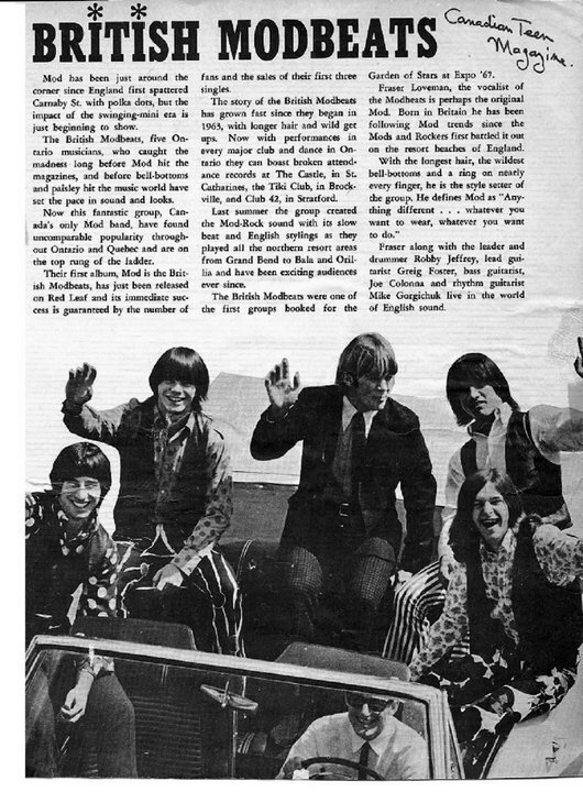 When you think of Mod music from the sixties that came out of Canada, The Modbeats are THE reference. They came out of the unlikely small city of St. Catharines, Ontario in the Niagara region. That didn't stop them from making a lasting impact on the thriving North American garage and psychedelic scene of that era.
