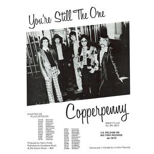 Producer Harry Hinde did a top-notch job recording the band at PAC 3 Studios in Dearborn, Michigan, capitalizing on Wamil's soulful vocals and going for more of an R&B sound with many of the songs. First up in late 1972 was Copperpenny's finest moment. "You're Still The One" featured group vocals, as well as harmony vocals from Tony Orlando's back-up group, Dawn. It remains a mystery why "You're Still The One," with an improved intro for the single version, never hit the top of the charts. It did, however, give Copperpenny its first top 40 hit, peaking at number 26 nationally and number 16 in Toronto. However, the next single would become their signature song and biggest hit. "Sitting On A Poor Man's Throne" peaked at number 14 in 1973, even though the song had been shortened by almost 2 minutes to make it suitable for hit radio. (Note: The full length version can be found on the vinyl album of the same name. The only versions that have made it to CD have also been shortened. Brian Chater, who now owns Copperpenny's recordings on Sweet Plum, has been quoted as saying, "There had been no use putting it out because there isn't a group anymore." That statement makes it pretty clear what is wrong with the industry today. Executives in the music business aren't even music fans. It's a good thing Chater doesn't look after The Beatles' catalogue.)