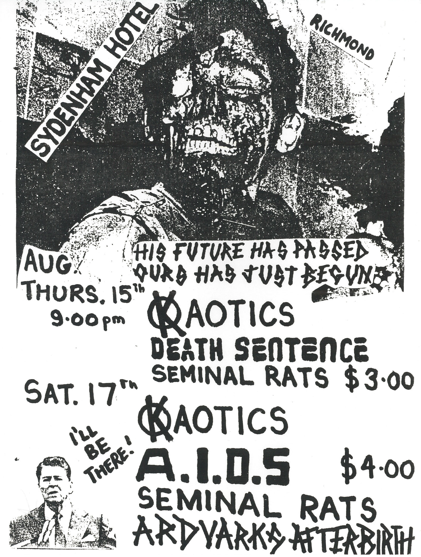 1985-08-15_Kaotics + Death Sentence + Seminal Rats_Sydenham Hotel (Richmond, Australia)_flyer_+