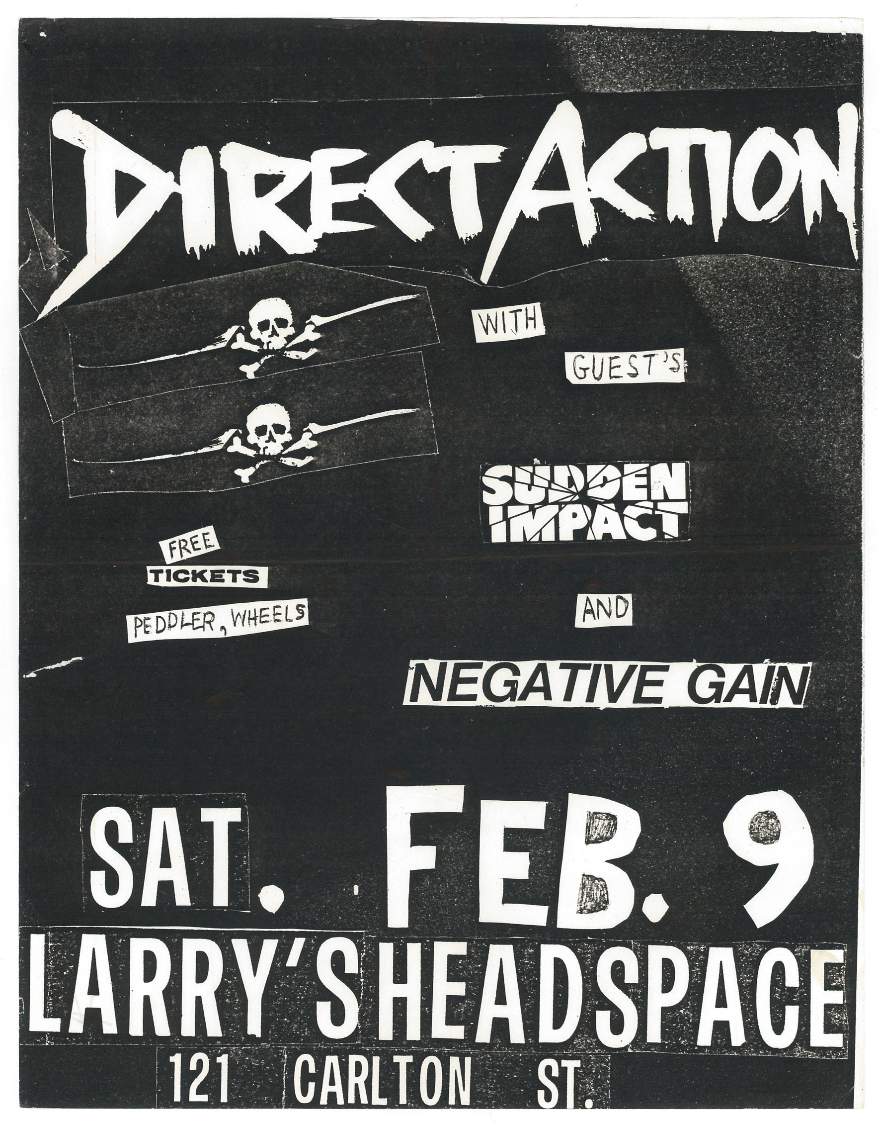 1985-02-09_Direct Action + Sudden Impact + Negative Gain_Larry_s (Toronto)_flyer_+