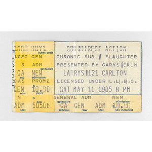1985-05-11_GBH + Direct Action + Chronic Sub + Slaughter_Larry_s (Toronto)_ticket_+