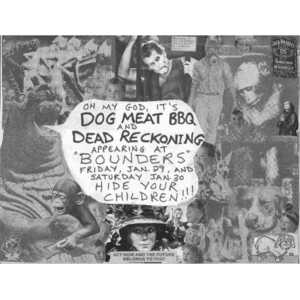 Dog Meat BBQ was formed in St. John's, Newfoundland, in the early summer of 1986. The main instigators were vocalist Mike O'Brien and guitarist Wallace Hammond, formerly of The Bubonic Plague, a punk band formed in St. John's in 1982, which had disbanded in Toronto in 1985. They were soon joined by bassist Duncan Snowden of The Riot, another St. John's punk band. Filling out the initial line-up was drummer Justin Hall, who had earlier played with Wallace in the legendary punk group Da Slyme.