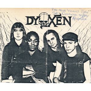 Dyoxen was formed in 1989 by guitarist/vocalist Michael Sanders. Eventually a lineup stabilized long enough to record an album, but by the time the album was released, the lineup had already changed. Thus, the lineup below is the actual recording lineup, not the touring lineup listed on the album (Sanders/Kerr/Steve Sinclair/Bret Stacey). First Among Equals' complex, tempo-change-filled thrash style won the band some good reviews, but the album was not promoted well and failed to sell, and coupled with the band members moving apart both musically and personally, spelled the end for the band. Sanders now heads a metal/funk/percussion group entitled OneTribe.