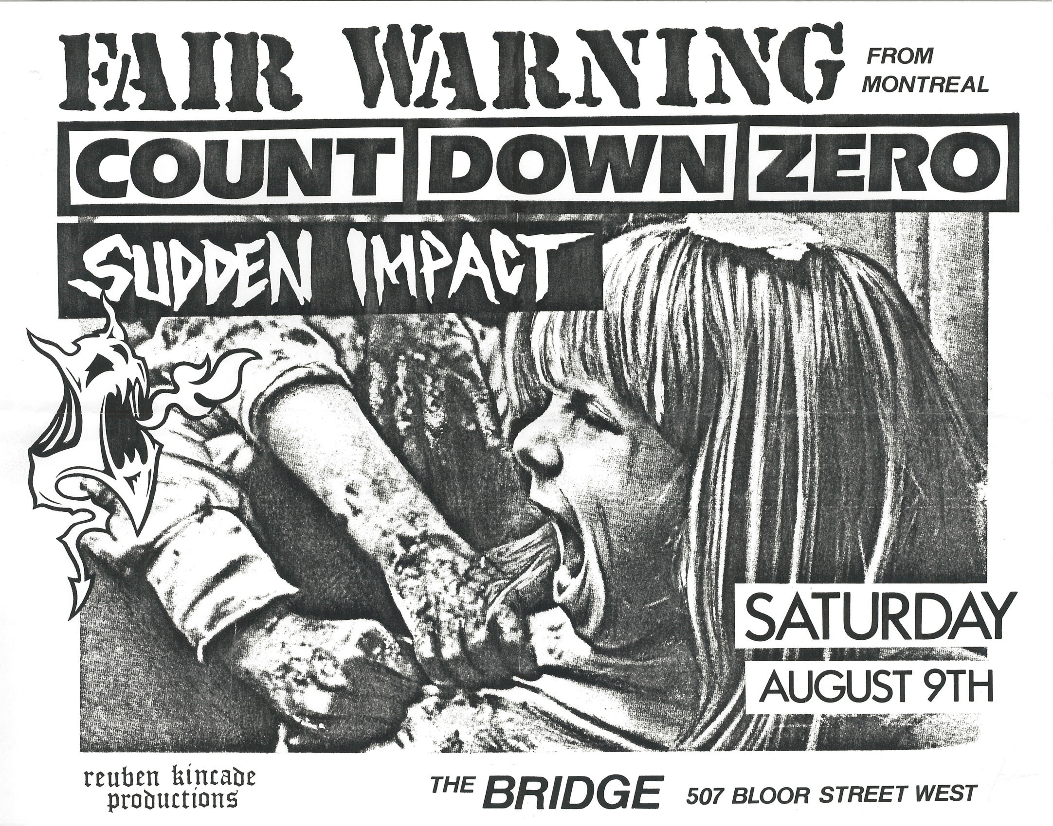 1986-08-09_Fair Warning + Count Down Zero + Sudden Impact_Bridge (Toronto)_flyer_+