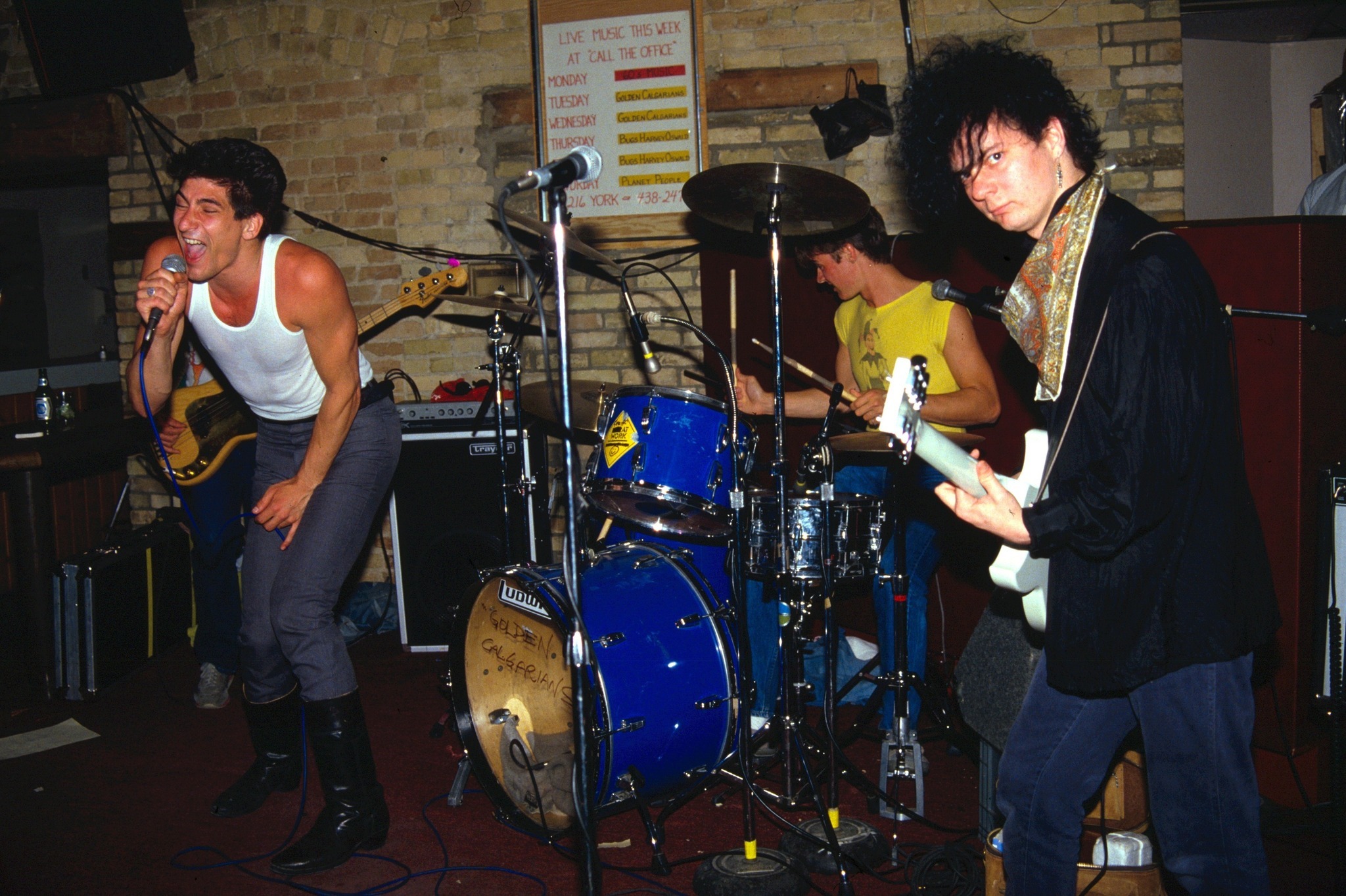 By the time they recorded their debut LP, It’s Fun to Be Alive, in 1981, Fawcett had departed and guitarist Doug Smith had joined, completing the lineup that most Calgarians remember: Bruno up front, Doug Smith on guitar, Dave DeGrood on bass, and Jeff Smith behind the kit. They were a relentless live act, playing anywhere in the city that would have them and touring widely across Canada. Their debut album showed a band experimenting with new wave angles and post-punk jolts, but nothing softened their basic identity—loud, strange, funny, and impossible to mistake for anyone else.