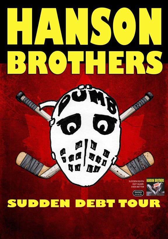 The Hanson Brothers are Johnny Hanson (vocals), Robbie Hanson, (bass), and Tommy Hanson (guitar), with long-time cousin Ernie behind the drums. Other brother, Kenny Hanson left the Hanson Brothers' drum kit to devote himself to his true passion: the theater. Kenny can be seen to this day in remote Canadian towns, touring his one man production of The Houston 500.