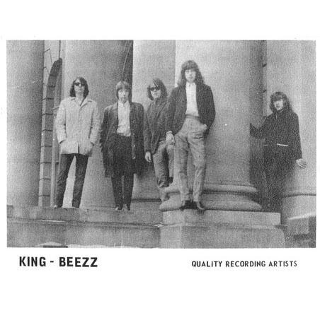 The summer of 1965 saw the king-Beezz breaking out on to the high school scene. Chuck started booking them around town, but still hadn't committed himself to managing them. Although stage fright and inexperience got the better of them, these early shows were memorable for the sheer amount of frenzy and and adoration the young audiences provided. One thing for sure, they were an oddity; the first long hair act in the region, plus they had members from the UK, which in the eyes of many was the same thing as being a UK act! Russ Campbell, a deejay at rival CHED commented that: 'The King-Beezz were so different, so alien to the landscape, that you couldn't hep take notice of them. Either you thought they were cool, or a bunch of freaks!"