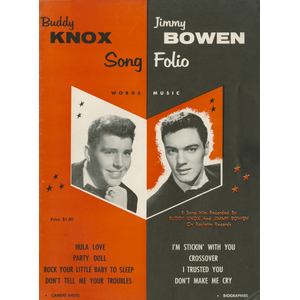 From that one session Buddy Knox would receive two gold records in 1957, one for "Party Doll" written and sang by Knox and the other for a song that Jimmy Bowen sang and co-wrote with Knox called "I’m Sticking With You". "We didn’t know what we had just done," Knox recalls, " All we wanted to do was record our music and sell it around the college. This was just a fun trip for us."
