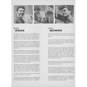 The Rhythm Orchids big break came from Don Lanier’s sister who worked in New York City as a model. She heard that Roulette Records, a new record label in town operated by Morris Levy, was looking for some new talent. Back in the 50’s getting your music heard was a little bit easier that it is today, so she called Morris Levy and dropped a copy of "Party Doll" off for him to hear. Morris liked what he heard and made arrangements for the band to come to New York. So the Rhythm Orchids, Buddy Knox, Jimmy Bowen, Don Lanier and new member David Alldred, went to meet Morris Levy at Roulette Records in New York City.