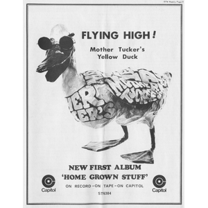 West Coast quintet Mother Tucker's Yellow Duck was formed in 1967 - not as a group of musicians but as a collective consisting of Kathy Kay from Boston who was the original Mother Tucker, John Patrick Caldwell as The Yellow Duck (aka Raphael Red The Village Idiot), Bob O'Connor (aka Dogan Pink Foot/Sheldon O'Dogan), and Michael Goldman (aka Garnet Crystalman).