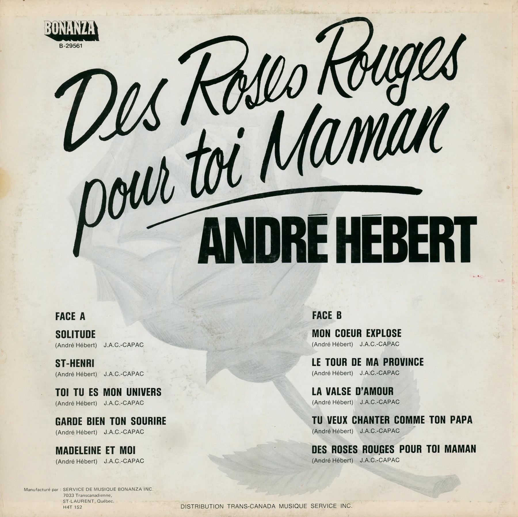 André Hébert - Des Roses Rouges pour toi Maman Face B