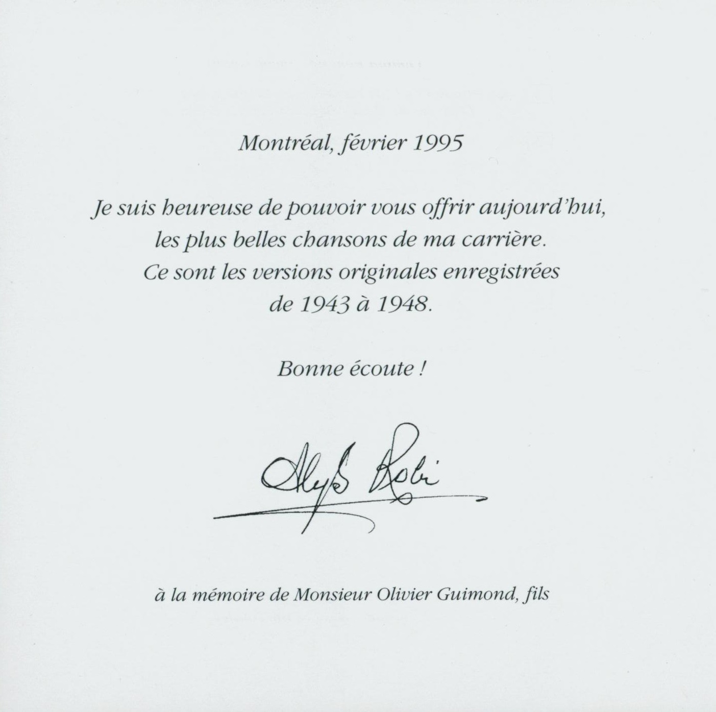 Alys Robi - Les succès d'Alys Robi Booklet picture (1)
