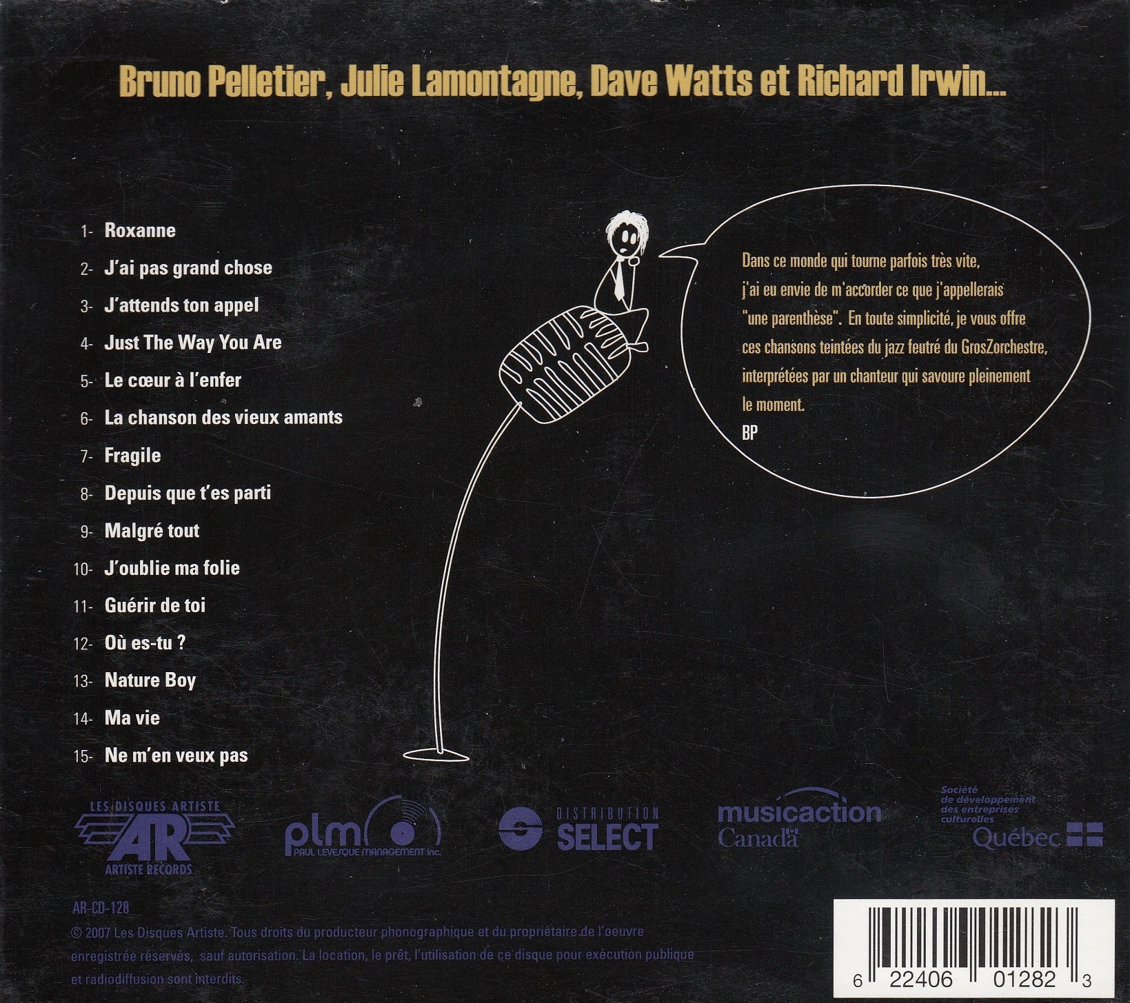 Bruno Pelletier - Bruno Pelletier et le GrosZorchestre Back cover