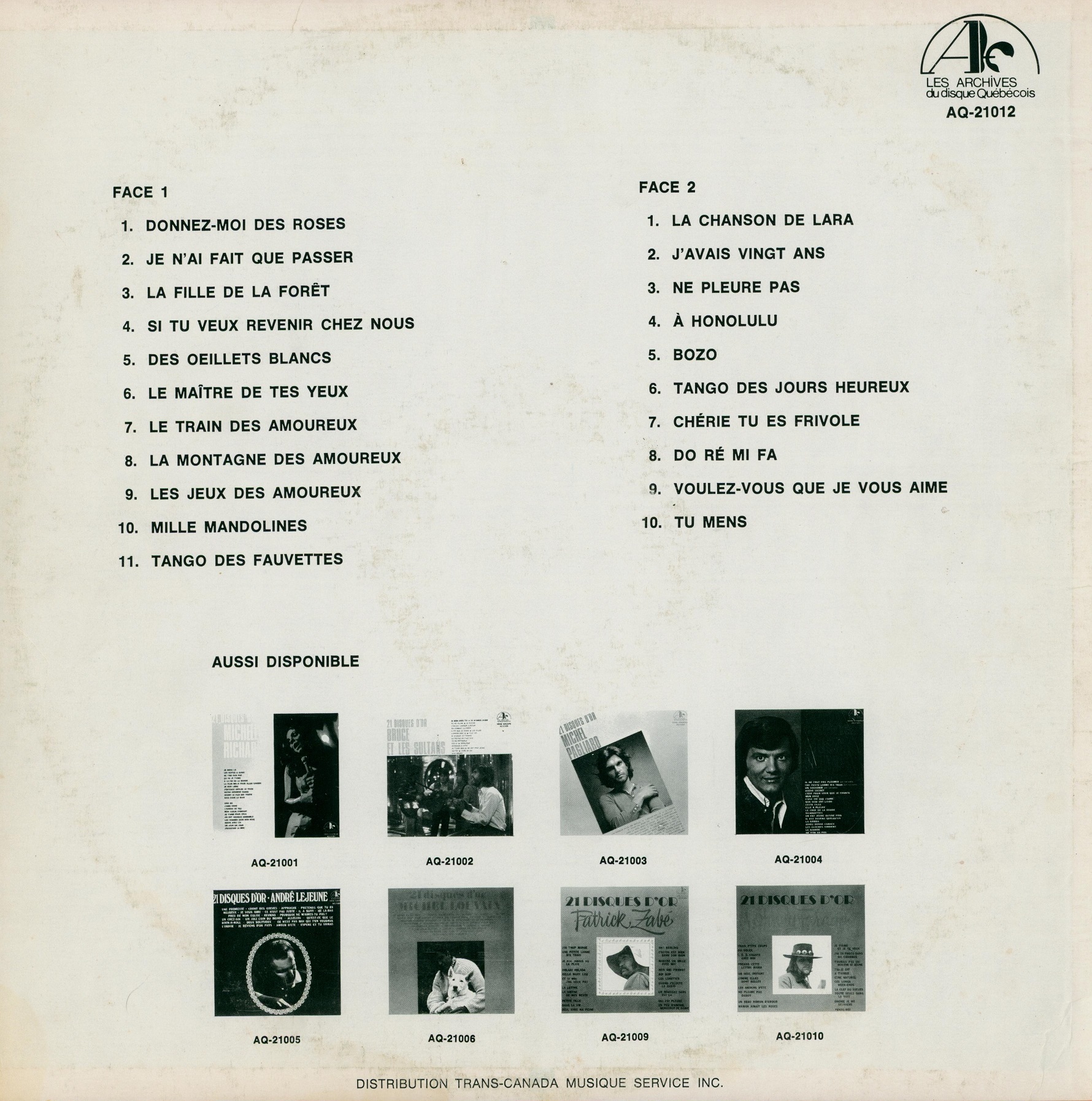Fernand Gignac - 21 Disques D'Or Back cover