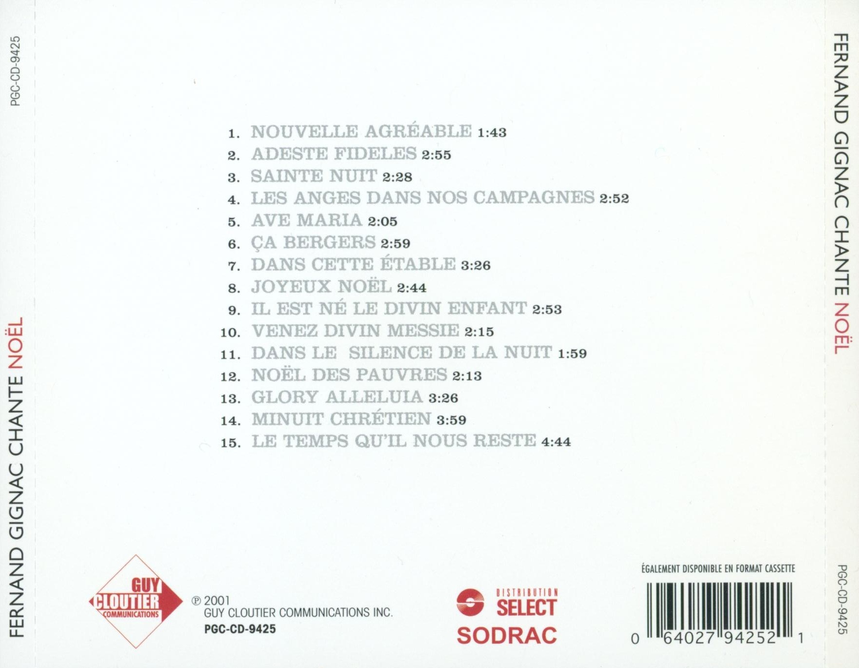 Fernand Gignac - Les Grandes Chansons de Noël Back cover