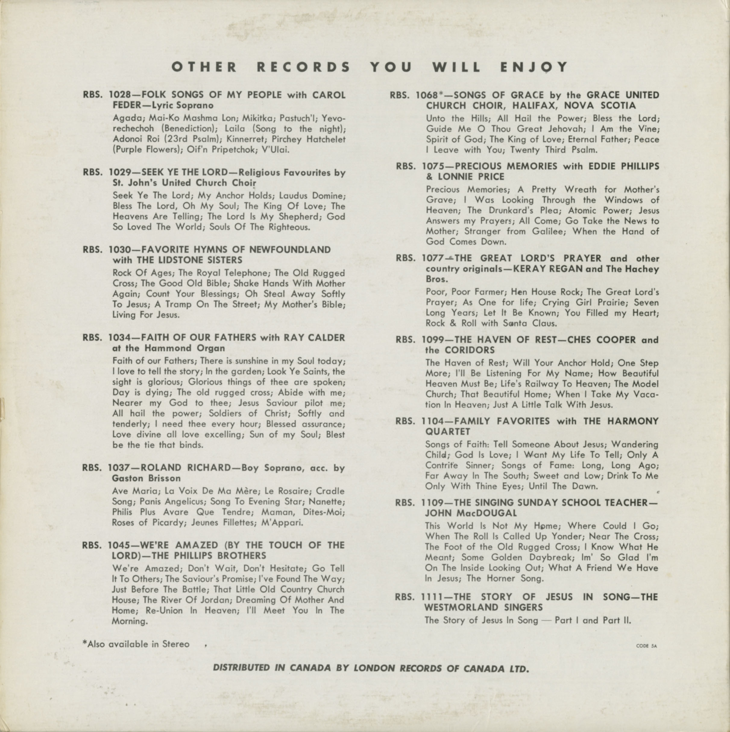 Keray Regan and the Hachey Bros. - The Great Lord's Prayer and other country originals BACK