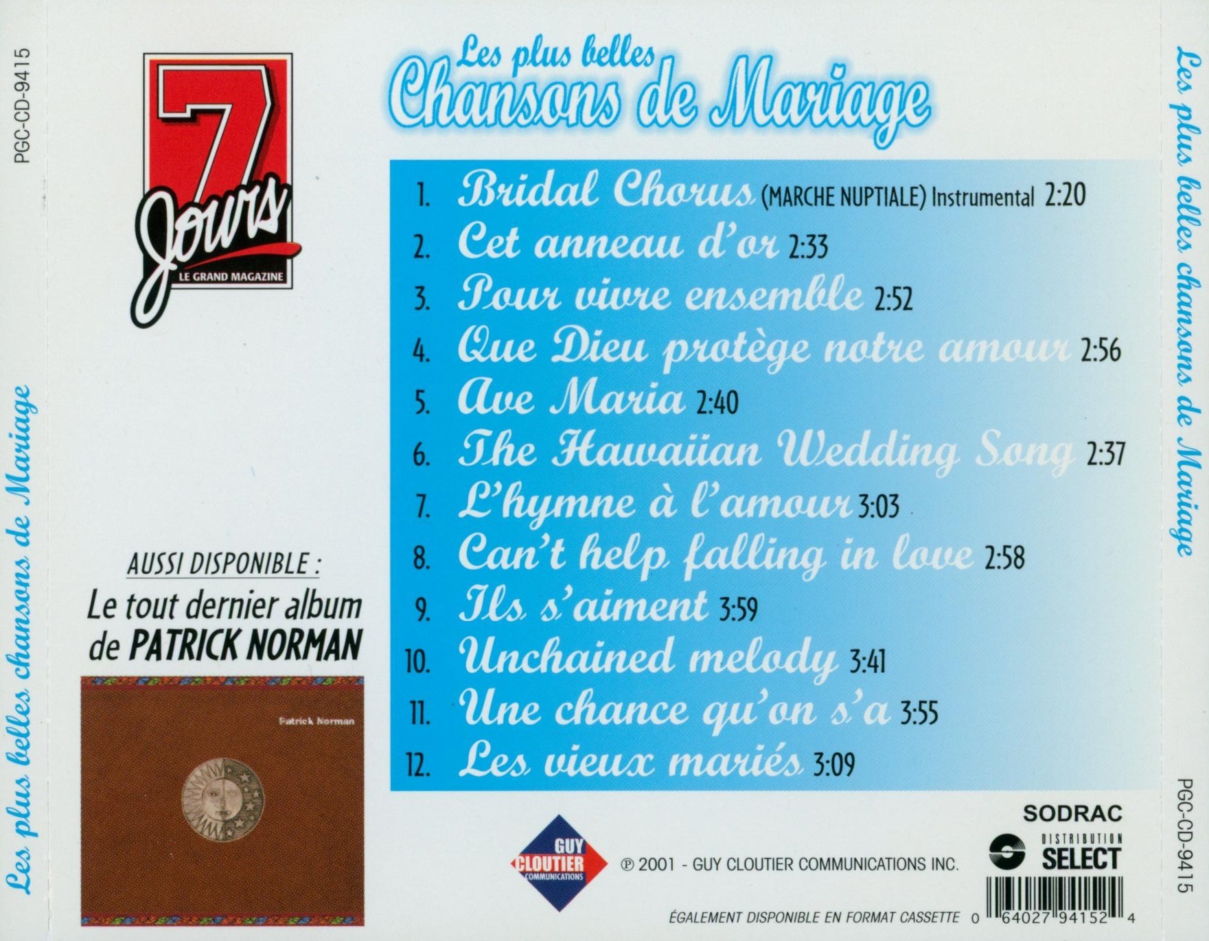 Patrick Norman - Les plus belles Chansons de Mariage Back cover