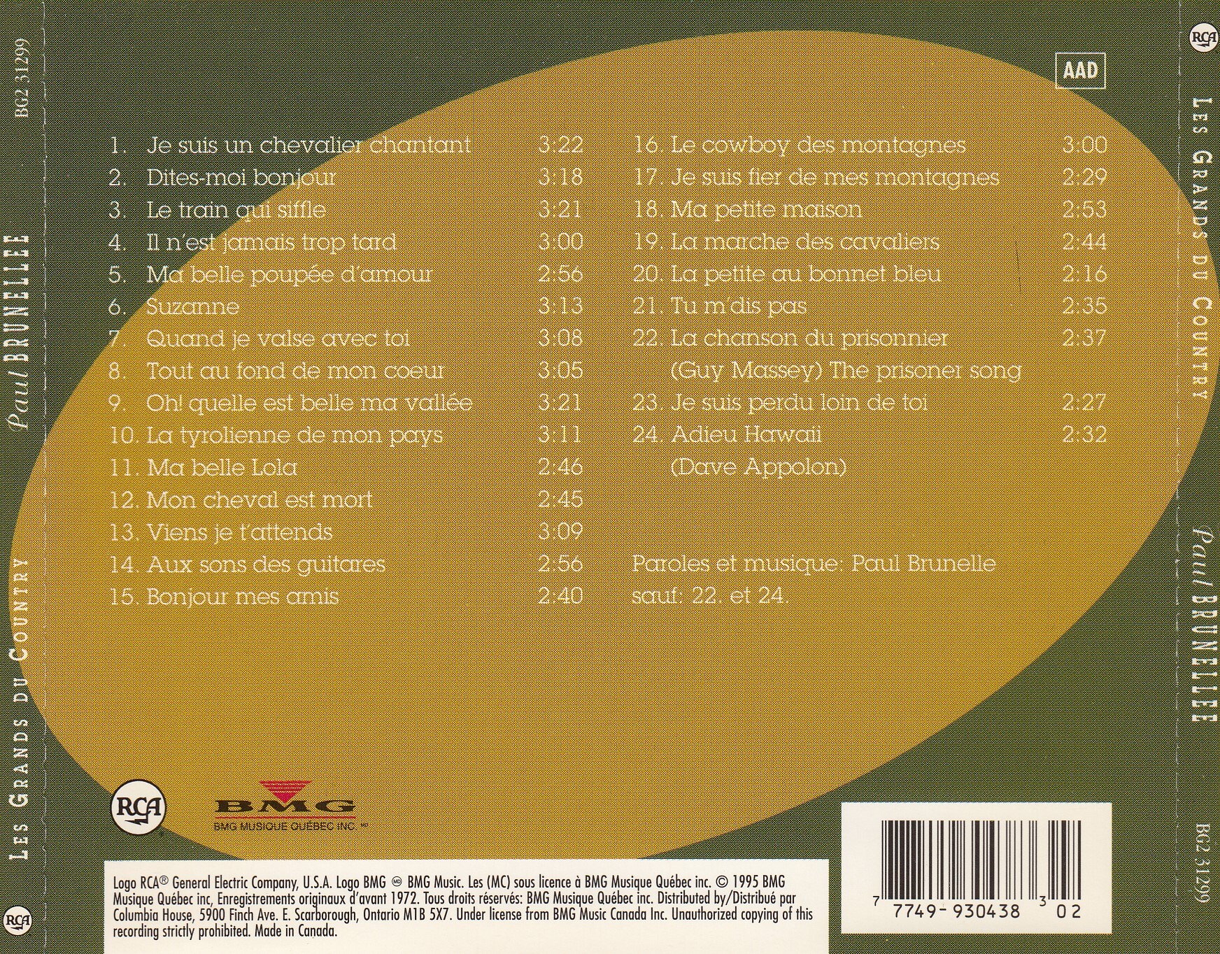 Paul Brunelle - Les Grands Du Country Booklet picture (1)
