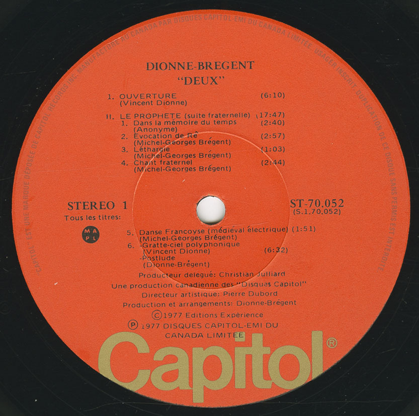Le Prophète (Suite Fraternelle); Dans La Mémoire; Évocation De Rê; Léthargie; Chant Fraternel; Danse Françoyse (Médiéval Électrique); Gratte-Ciel Polyphonique - Postlude |