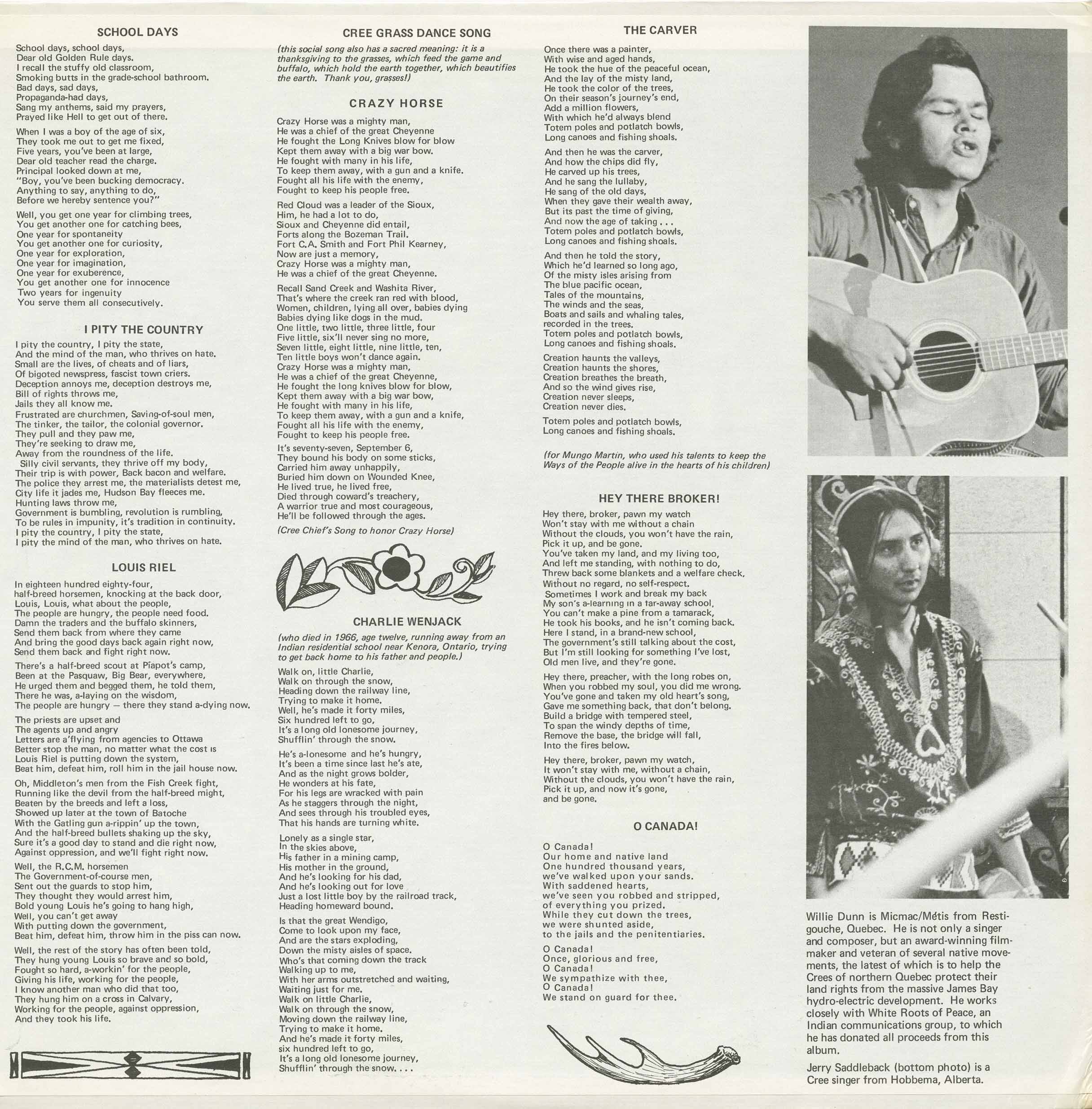 Willie Dunn - Louis Riel, ST, Kot'ai KOT 3000, 1978 "Louis Riel was the leading figure in the fight for independance of the Metis, or half breed nation, in the Canadian West, between the years 1860 to 1885. Riel, a very religious person of the Christian faith, and himself a half breed, was a man who believed in the self determination of the half breed nation. He was executed in Regina in 1885, and with the hanging died the hopes of tens of thousands of his people.