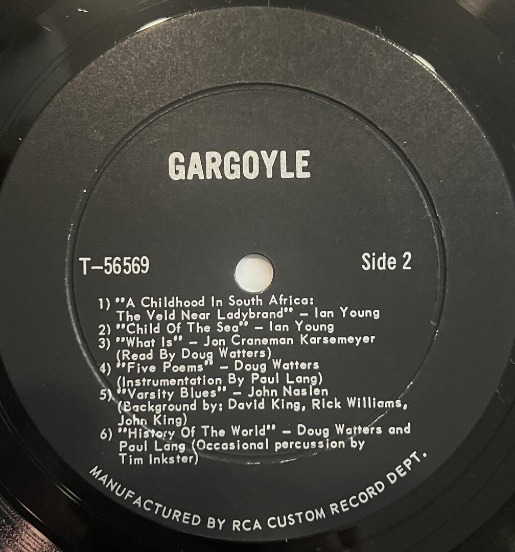 | Gargoyle | Doug Watters - Five Poems (instrumentation by Paul Lang) | ST | 01:43 | |
