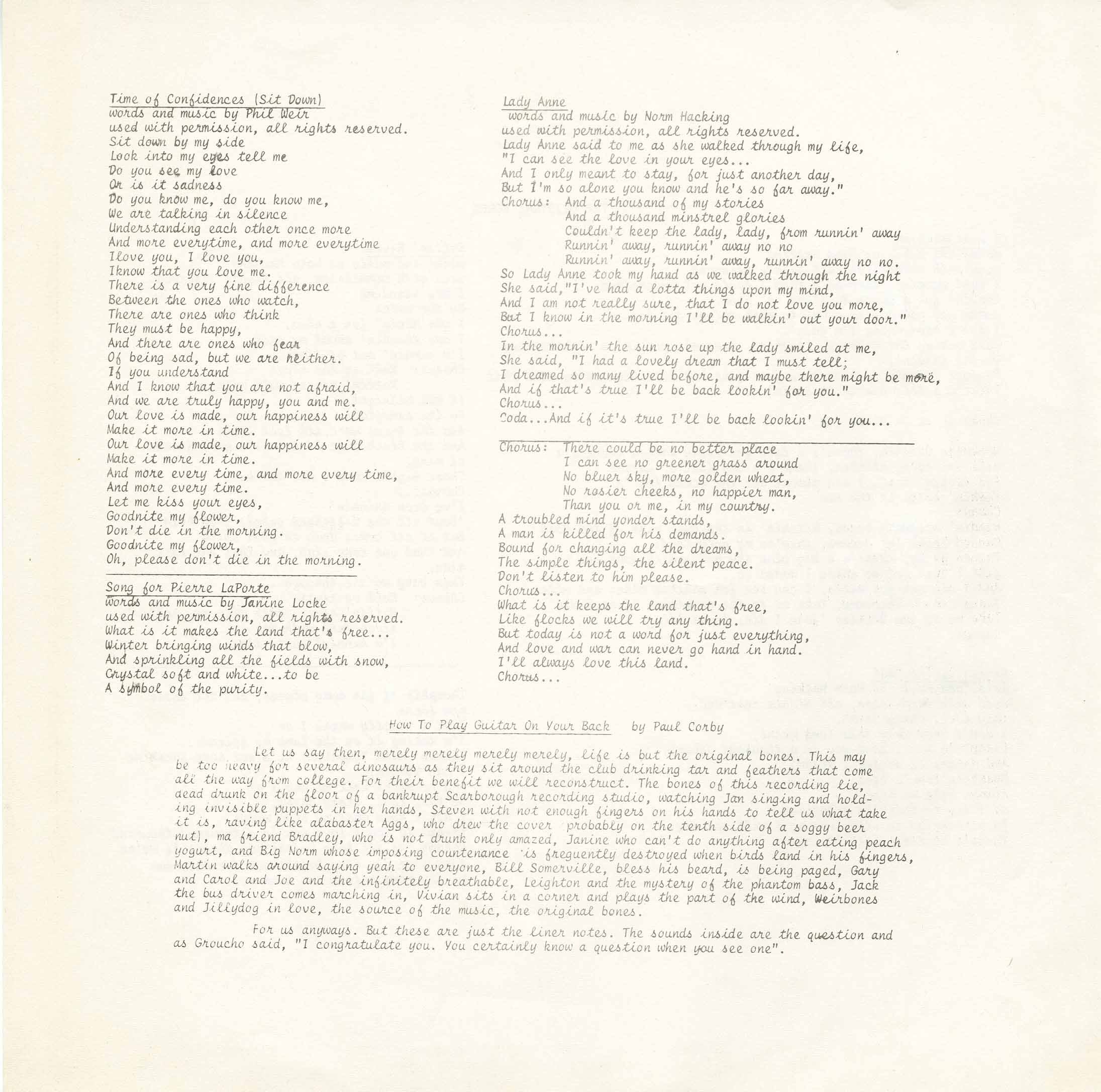 | Original Bones | Song for Pierre Laporte | ST | 03:53 | |