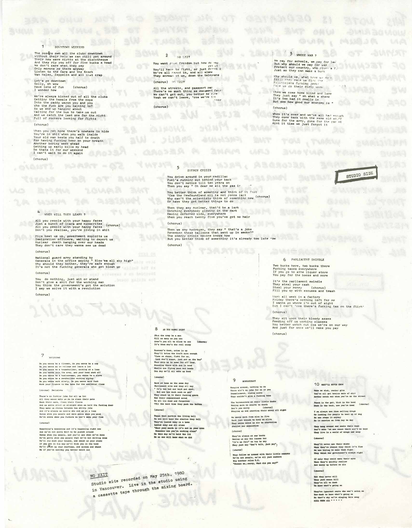 | No Exit | They'll Never Know | ST | 02:26 | |