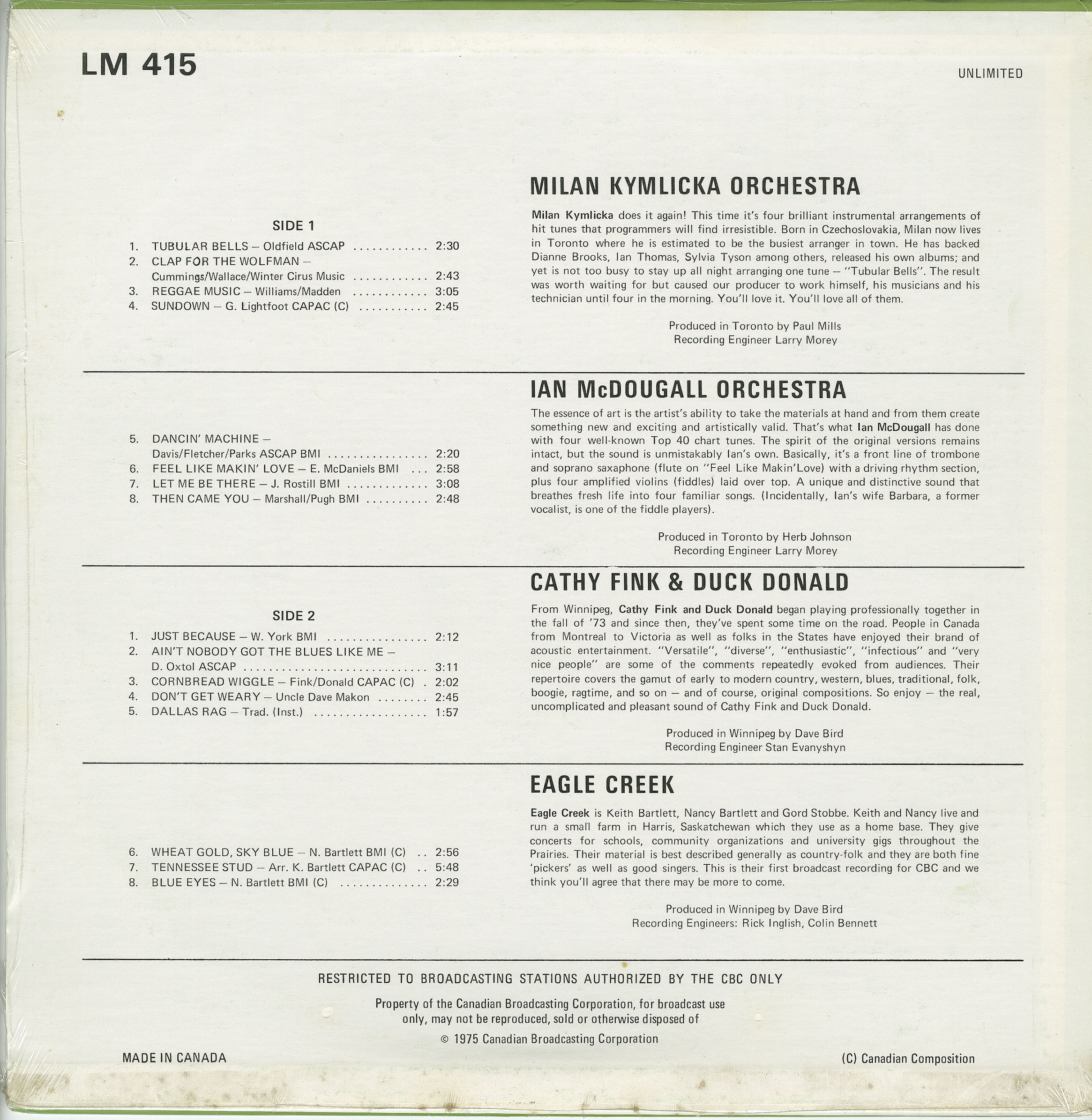 From CBC Toronto (split with Pat Riccio Orchestra (LM 09)