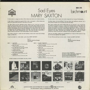 | Saxton, Mary | Sad Eyes | Sad Eyes b/w Take My Heart | 03:05 | |