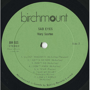 | Saxton, Mary | I Don't Know (McAulley) | Sad Eyes | 02:35 | |