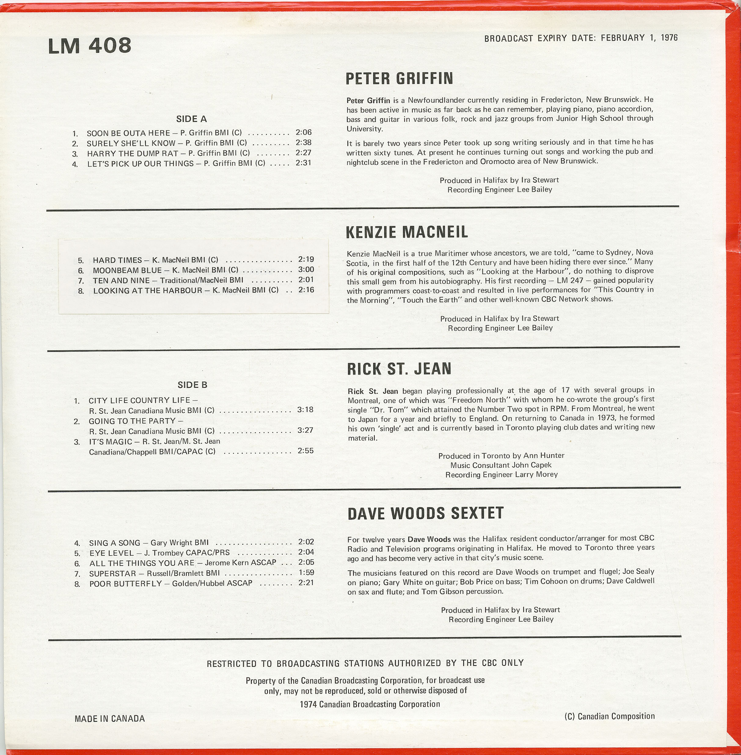 | St. Jean, Rick | City Life Country Life | CBC Comp 408 | 03:20 | |