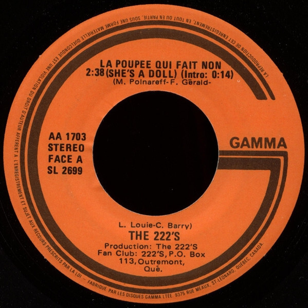 222's - La poupee qui fait non (She's a Doll) b/w La poupee qui fait non (version instrumentale)